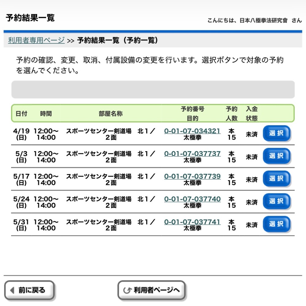 | 練習日時 | 月 | 火 | 水 | 木 | 金 | 土 | 日 |